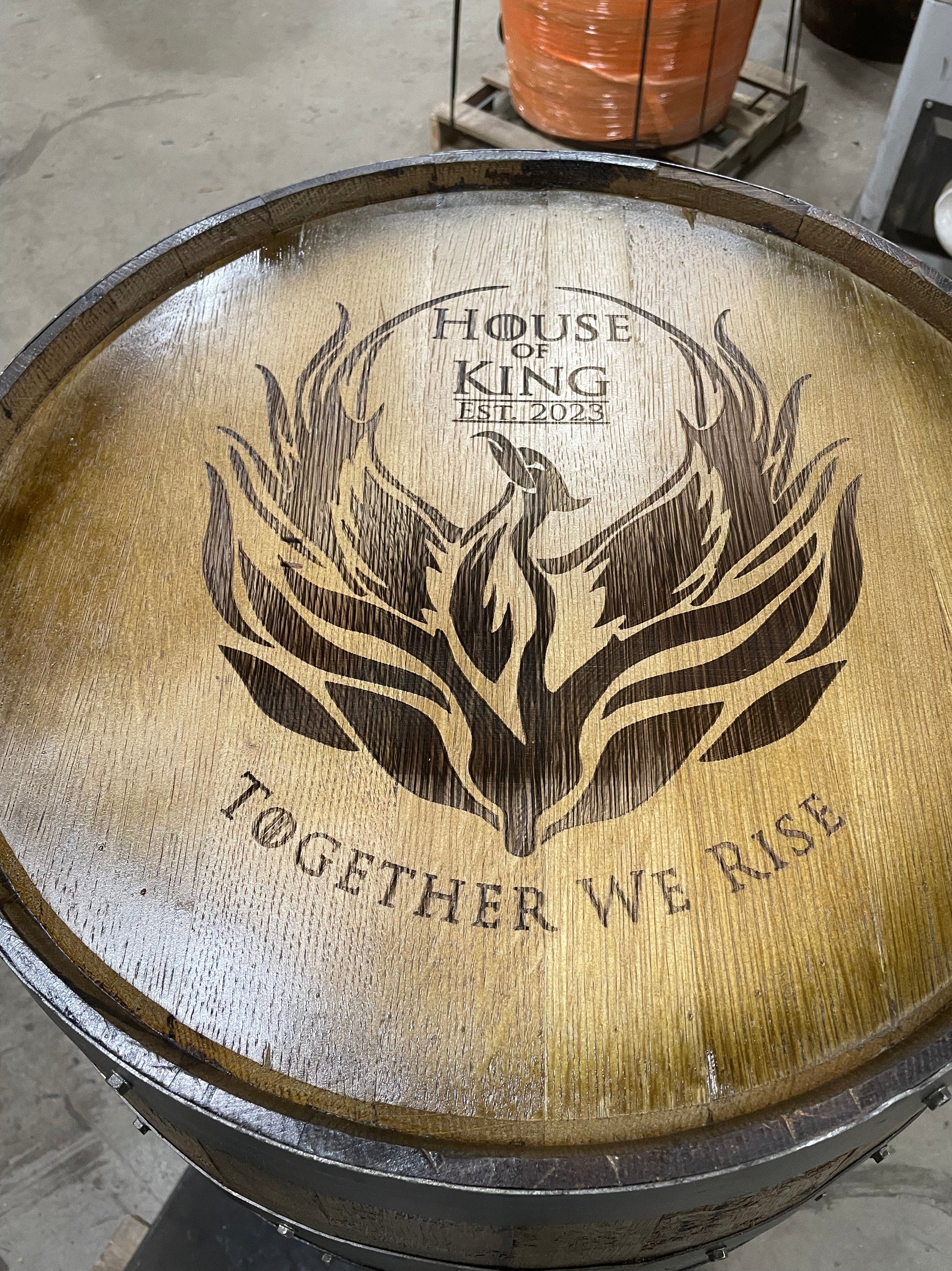 Created from a real whiskey barrel. Includes two rotating two lazy susan style shelves so you don’t have to take the bottles in front out to get to the ones in the back. Simply rotate the shelf! LED lighting over both shelves that are motion sensing. Open the doors and the lights come on so you can see you your stash! The barrel head (top) can be laser engraved with just about whatever you want; your favorite bourbon logo, your last name, your company logo, anniversary date, you name it, we’ve probably done it. We also have barrels available with the original distillery stamp on the barrel head if you would prefer that instead of a laser engraved logo. Additional charge may be necessary for certain branded barrels based on availability. Barrel is sanded, sealed, and clear-coated inside and out. If you have a preference for light, medium, or dark let us know in the "special request" field and we will try to accommodate your request. Please keep in mind that we use real, used whiskey barrels some so staining (or character) may be present on the exterior of the barrel since all whiskey barrels leak to some extent. *Any special request, please let us know in the special request box. We will do our best to accommodate your request. Due to the high level of customization offered, barrel cabinets are made to order and may take 2 weeks for production.*